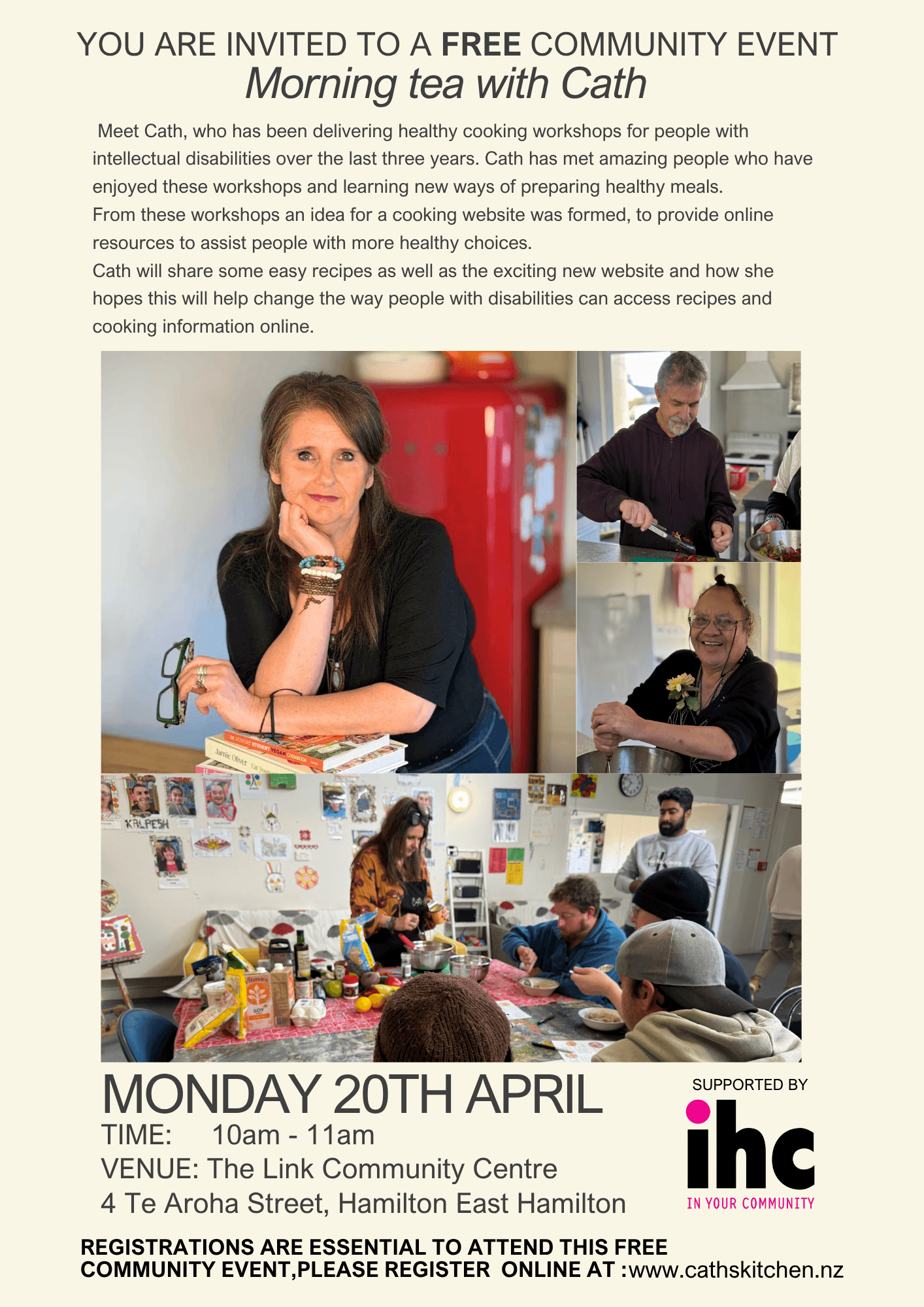 Cath will share some easy recipes as well as the exciting new website and how she hopes this will help change the way people with disabilities can access recipes and cooking information.