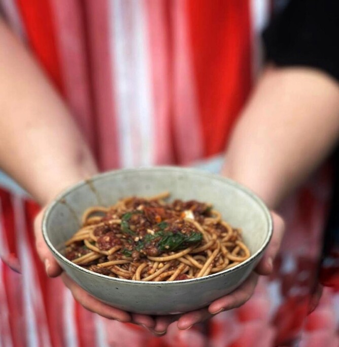 Place a portion of the plant mince into a frypan and stir fry over a medium heat . Add a tin of tomato’s , a large tsp on date syrup . Keep cooking until it’s all cooked through and hot . Do a quick taste test for seasonings and adjust to your liking!