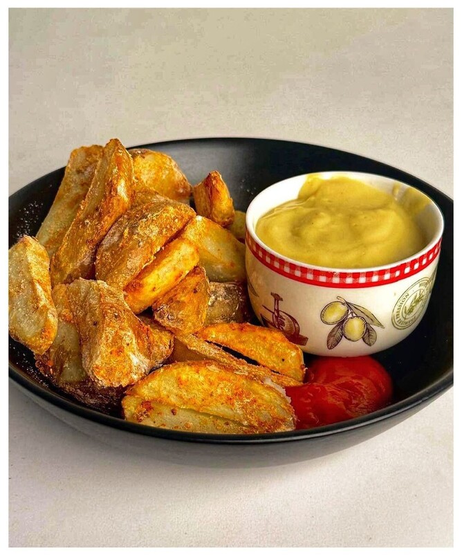 Sometimes you just want wedges for tea. Served with tomato sauce ( low sugar) and plant based cheesy sauce . Oil free of course but still crunchy with my secret coating. Well it won’t be a secret for long now. Precook your potato’s ( not quite cooked) then slice into wedges. Next pop them in a bowl and add half a lemon juiced. Then in a little bowl mix up 2 tsp cornflour , 1 tsp smoky paprika ,1 tsp sea salt , 1 tsp of onion or garlic powder, 1 tbsp of Nooch. Toss over your wedges and cook for 20 - 25 mins in the airfryer or in your oven on fanback at its hottest temp! Enjoy