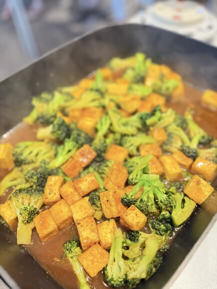Steam Broccoli , add cooked tofu and the sauce and heat through. Serve on your rice.