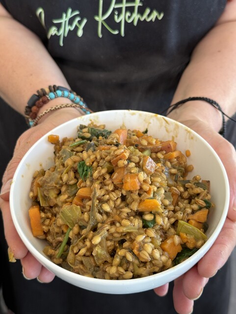occasionally, until the barley is al dente, 30 minutes. Add a splash of water if it gets too