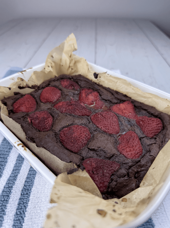 Put all ingredients into a blender and blend until combined. Put into a lined oven proof dish (I used a small rectangle) and bake at 175deg for 30mins. It’s nicer set in fridge (much more fudgy) but it’s still pretty yummy warm too!