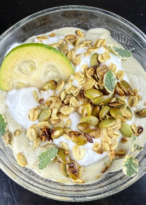 Top with extra Feijoas and something crumbly like Granola.