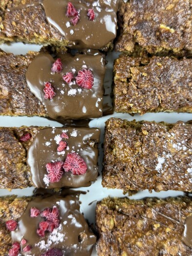 Optional but nice - When cool slice into “soldiers” and dip one end into melted dark chocolate. Sprinkle a little raspberry dust on.