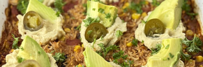 1 Packet of Taco Seasoning ( or make your own - see note)2 C Water1 Tin of chop Tomatoes or x5 Ripe Tomatos 1 C Rice 1 Tin Black Beans (drain) 1 C Corn Kernels Fresh or Frozen 1 Big Red Capsicum (Chop)Into a casserole dish add your liquids. Mix in y...