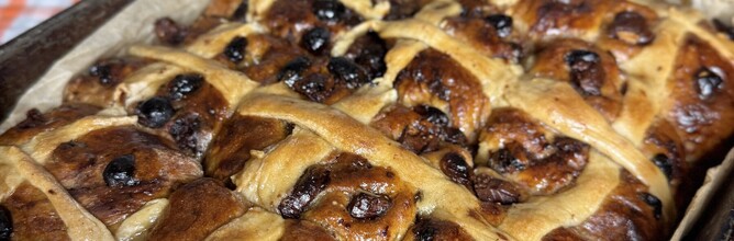 2 C Warm Water3 Tbsp Vegan Butter or oil1 Tsp Sea Salt 2 Tbsps Coconut Sugar or Honey 2 1/2 Tsp Instant Yeast 2 Tsp Baking Powder1 Tsp each mixed spice , cinnamon and cardamon 4 C Spelt Flour 1 Cup of Raisins 1 Orange Dark Chocolate about 1...
